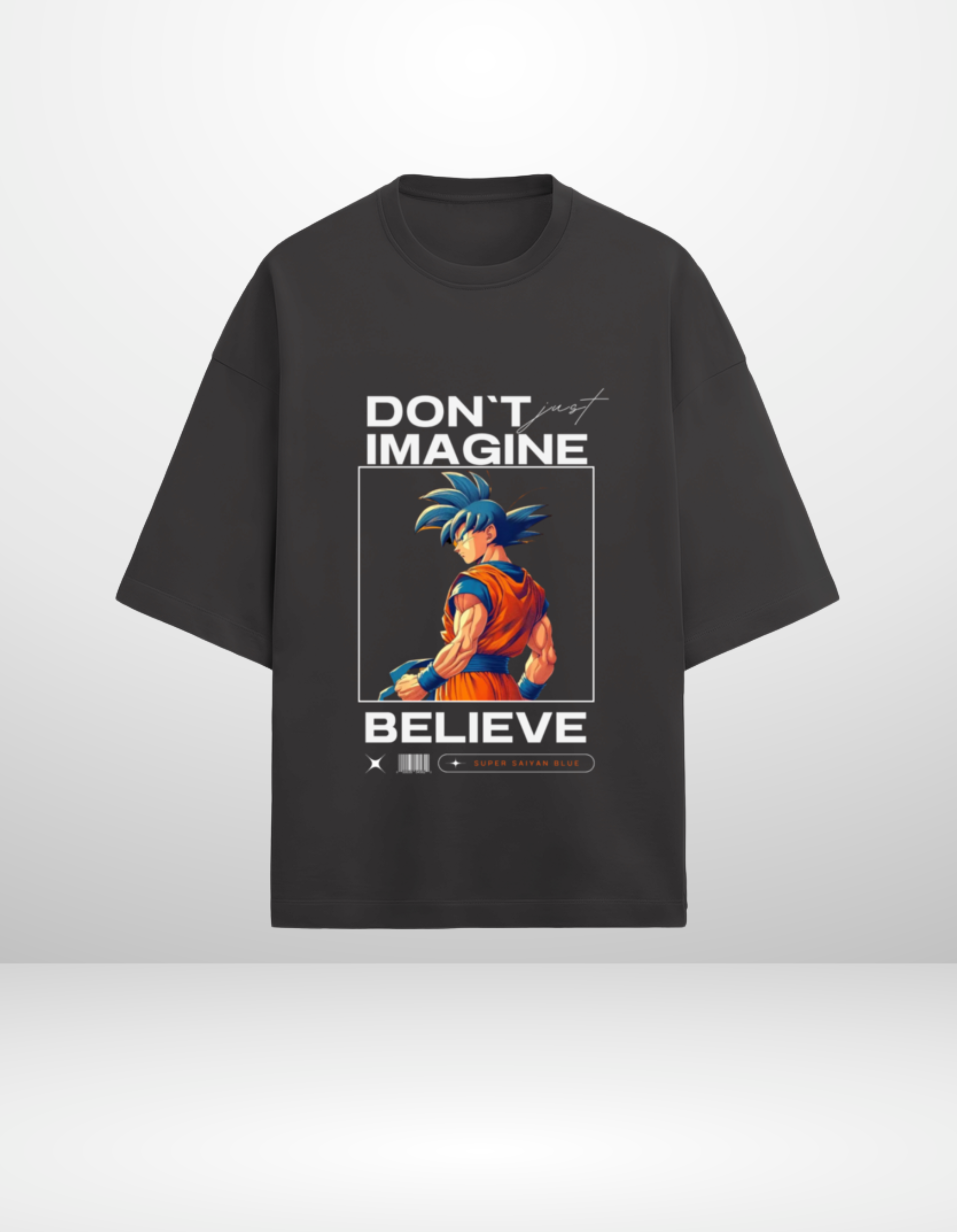 This oversized terry cotton tee features a powerful image of Super Saiyan Blue Goku, ready to unleash his full potential. Embrace your inner Saiyan with this statement piece that's as comfortable as it is stylish.